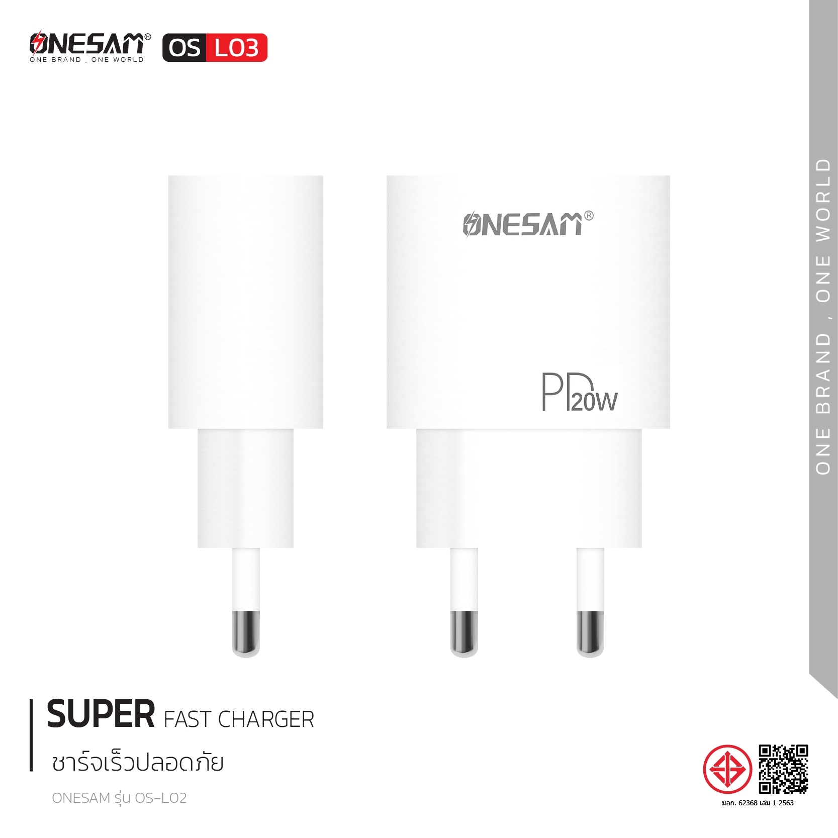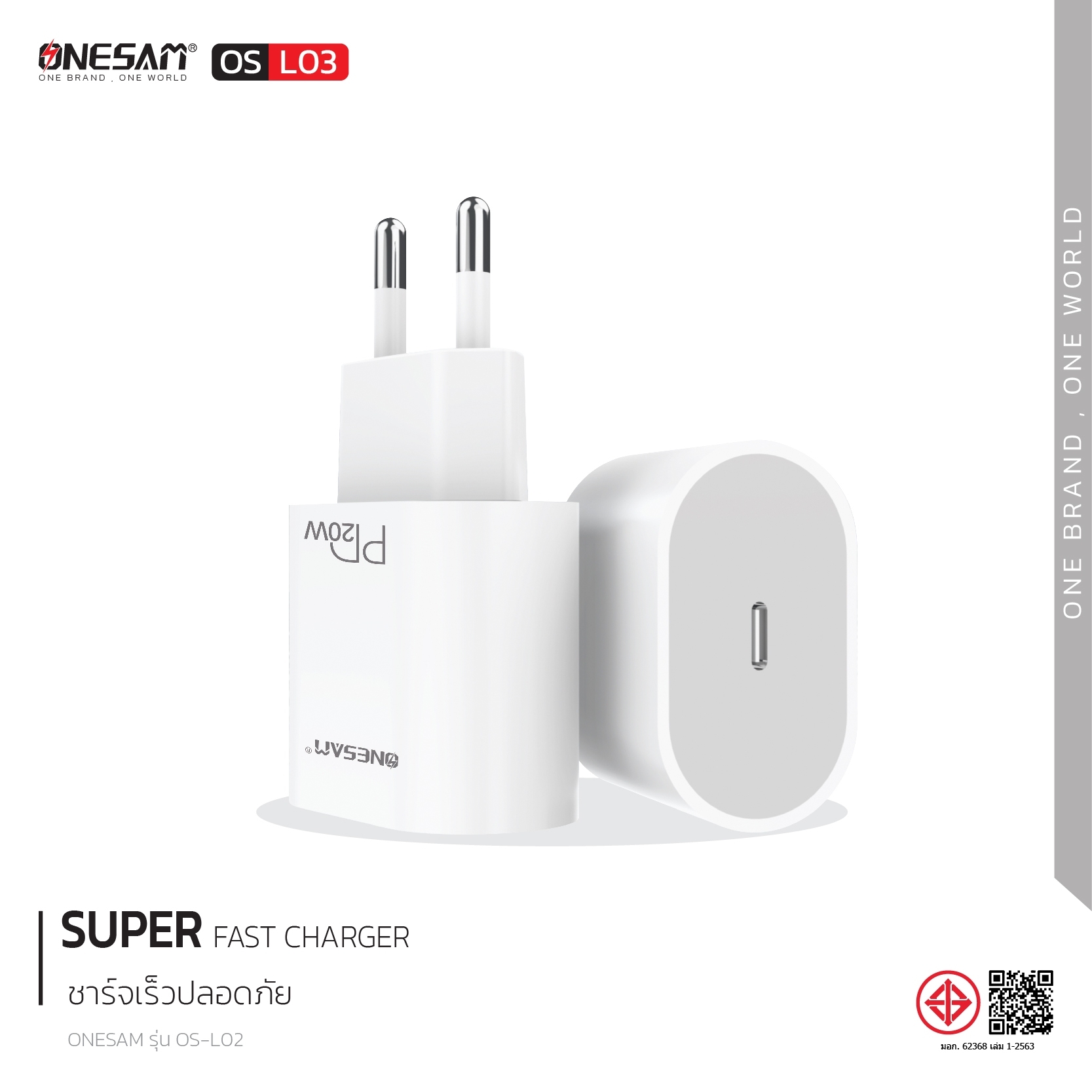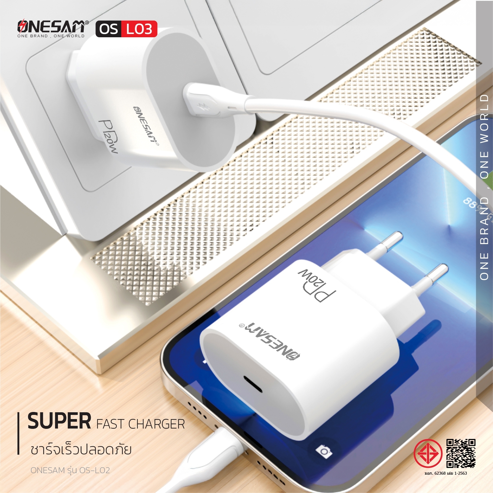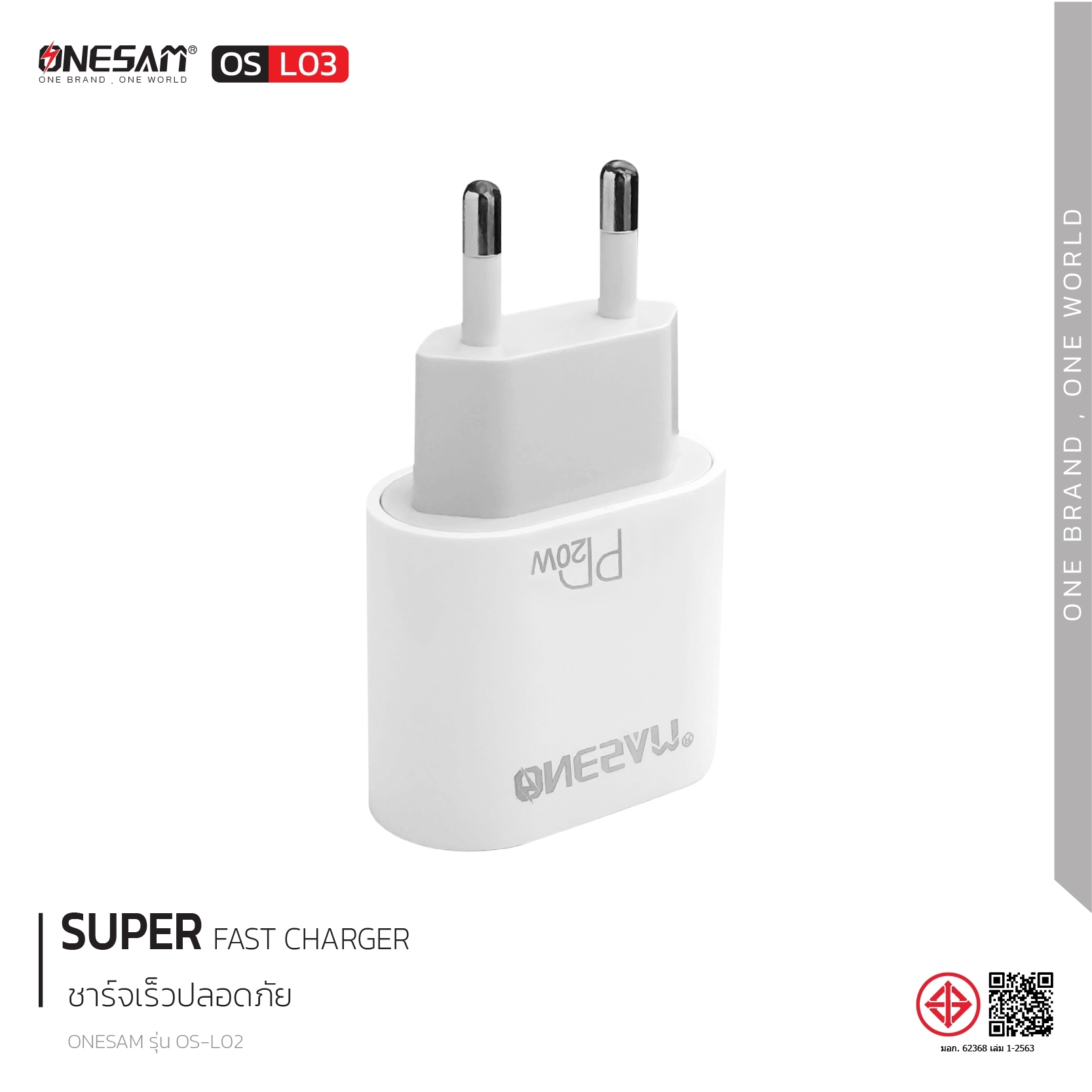 อแดปเตอร์ ONESAM รุ่น OS-L03 ช่องชาร์จ 1 ช่อง PD 20W ของแท้ ประกัน 1 ปี