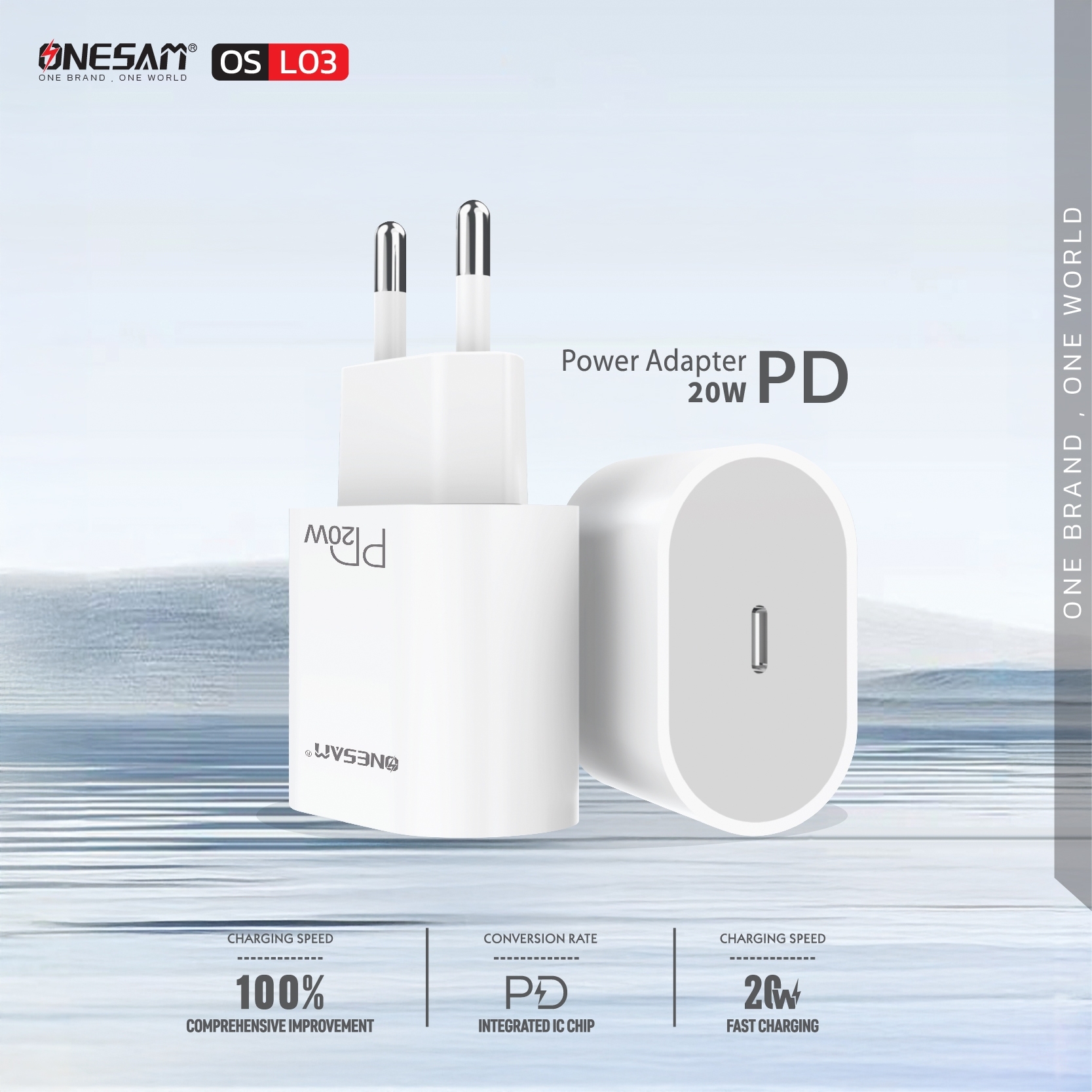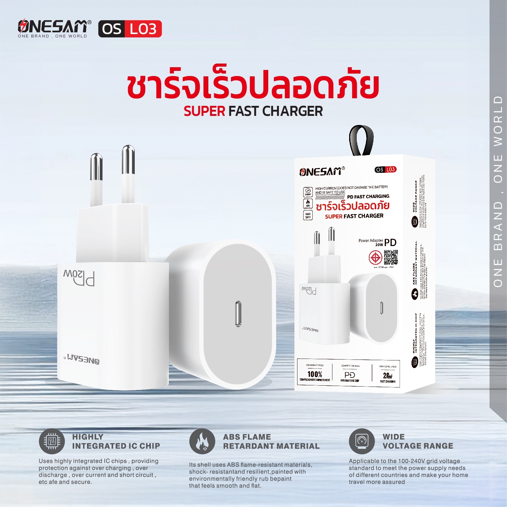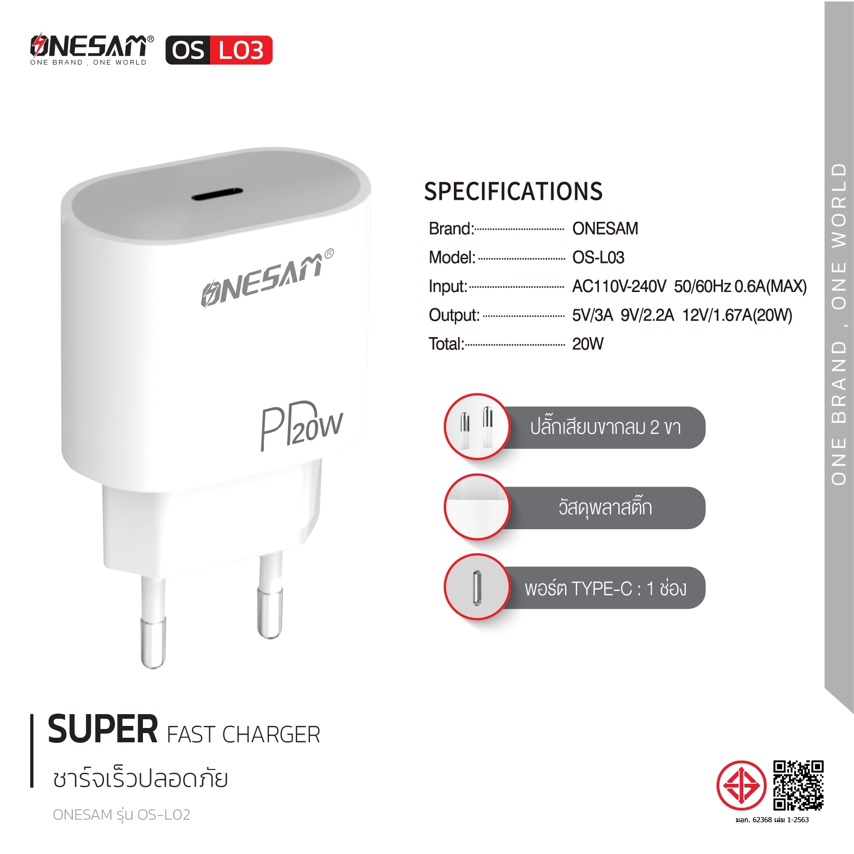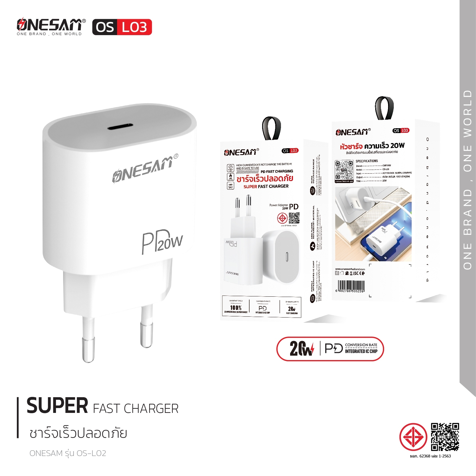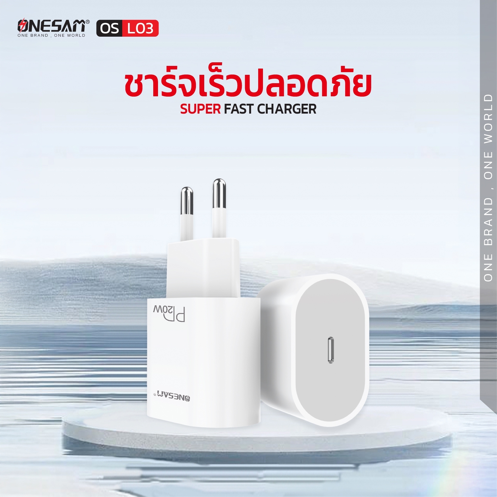 อแดปเตอร์ ONESAM รุ่น OS-L03 ช่องชาร์จ 1 ช่อง PD 20W ของแท้ ประกัน 1 ปี