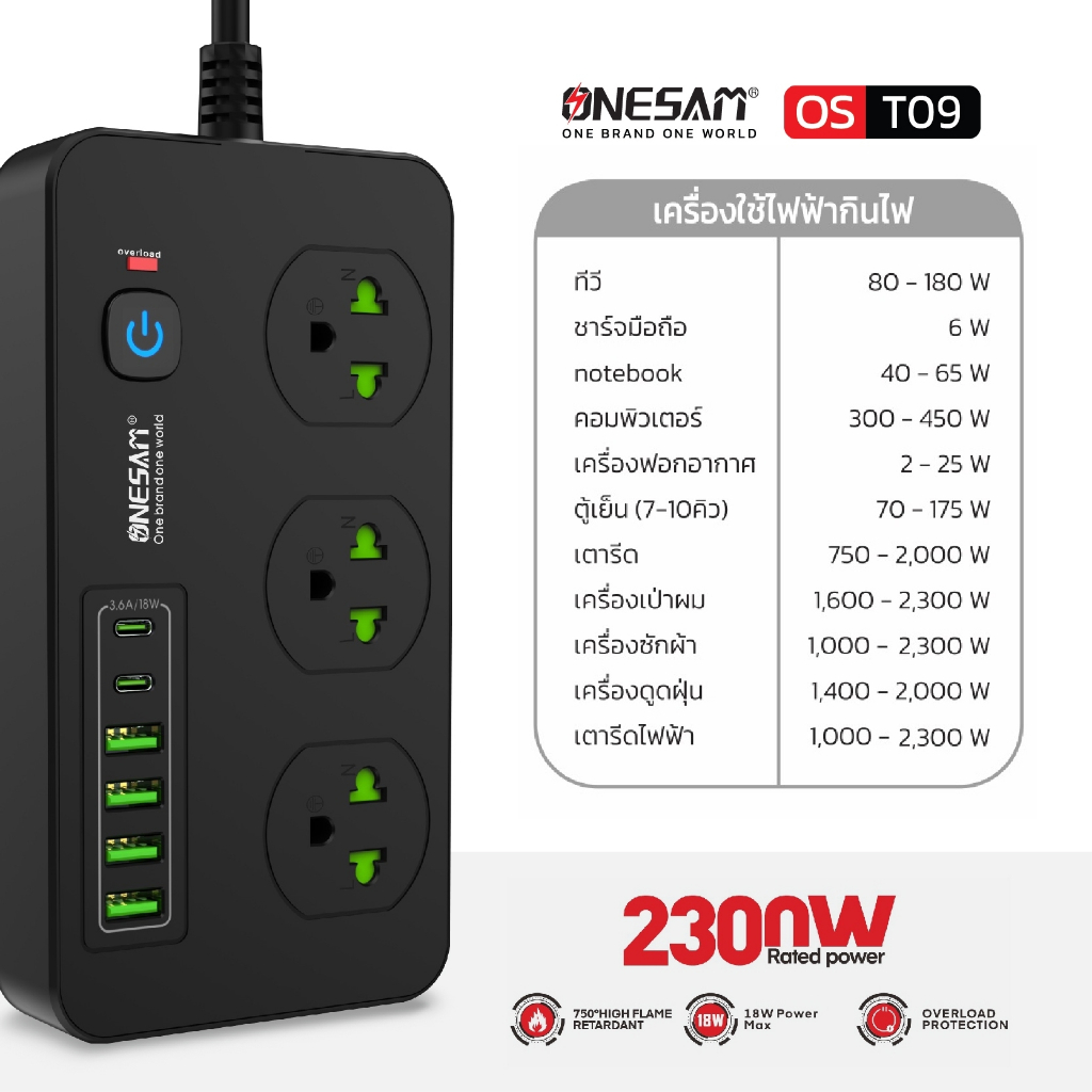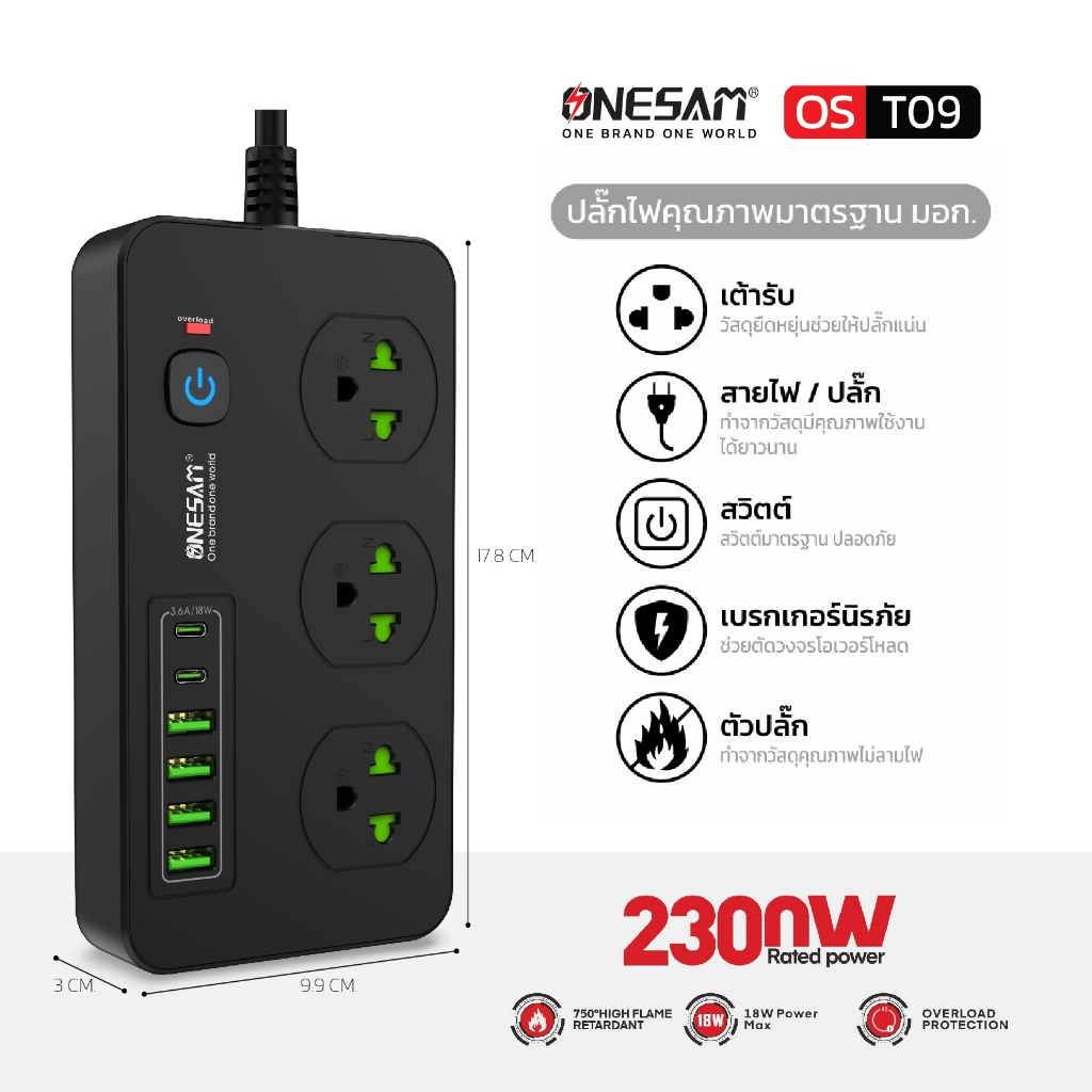 คุณสมบัติ ปลั๊กไฟ ONESAM รุ่น T09 NEW
