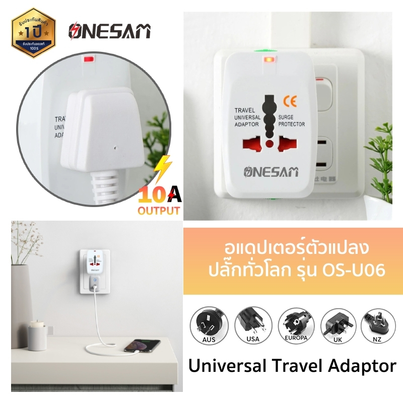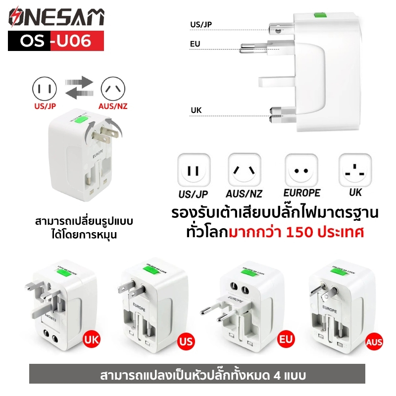 คุณสมบัติ อแดปเตอร์ตัวแปลงขาปลั๊กทั่วโลก ONESAM รุ่น OS-U06